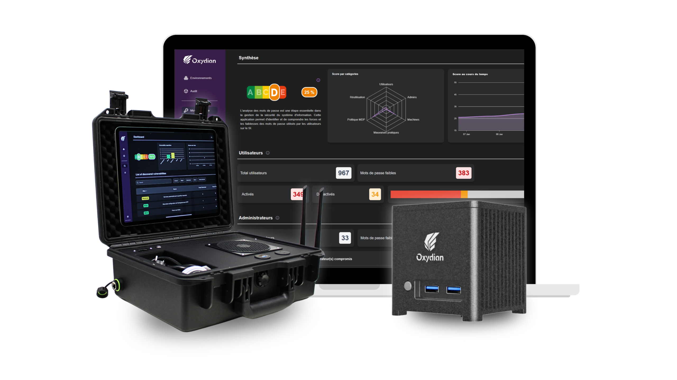 Pensée pour l’audit terrain, la VALISE Oxyscan est une solution offensive, nomade et efficace, capable d’évaluer en profondeur plusieurs systèmes informatiques.